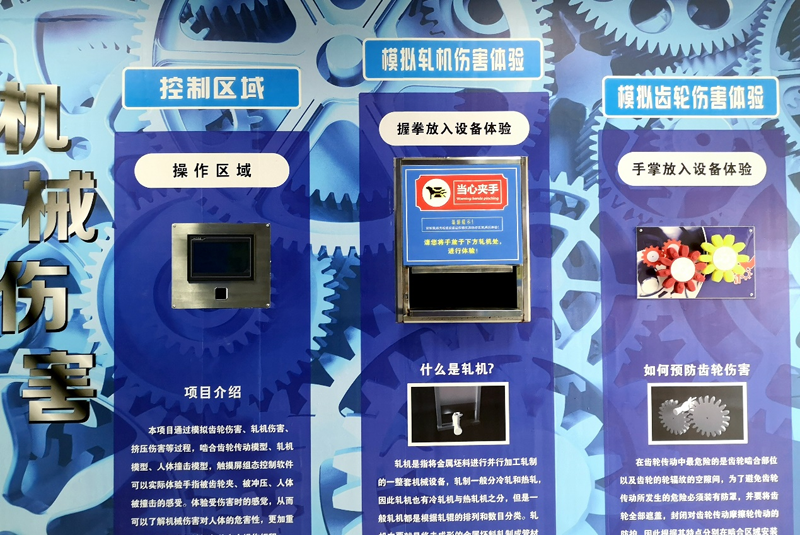实景建设生产制造企业场景,打造模拟机械设备,模拟它与工具的绞、碾、碰、割、戳、切等伤害,而引起工具或刀具飞出伤人,切削伤人、受或身体被卷入等事故。重在使体验者了解机械伤害对自身的危害,学习和掌握如何有效避免机械伤害事故的发生和在发生时如何及时有效地进行自救与互救。