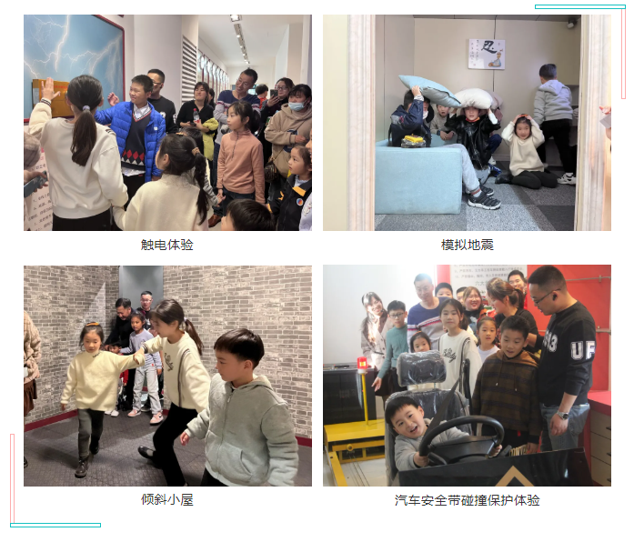 活动以形式多样、内容丰富的安全系列教育为主体,由讲解员分别带领大家到一楼安全体验区和二楼安全作业体验区进行了体验活动,开展了模拟灭火、烟雾逃生、地震撞击等体验。提高了大家的动手实践能力和自救能力。现场问答互动、实际操作等环节,让本次活动充满了轻松融洽的气氛。