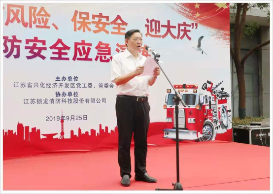 9月25日下午,兴化市开发区在江苏锁龙消防科技有限公司开展“防风险、保安全、迎大庆”消防安全应急演练,动员全区上下以“不忘初心、责任在我”的使命感,全力以赴抓好安全生产工作,为新中国成立70周年大庆营造安全稳定的社会环境。