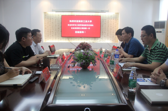 2020年8月11日,南京工业大学安全科学与工程学院喻源党委书记率领尤飞教授、曹兴岩副教授、史帆分团委副书记、3名博士生和4名硕士生等社会实践博士调查团一行11人莅临锁龙消防考察和交流。公司董事长潘德顺带领锁龙对接团队参加活动。